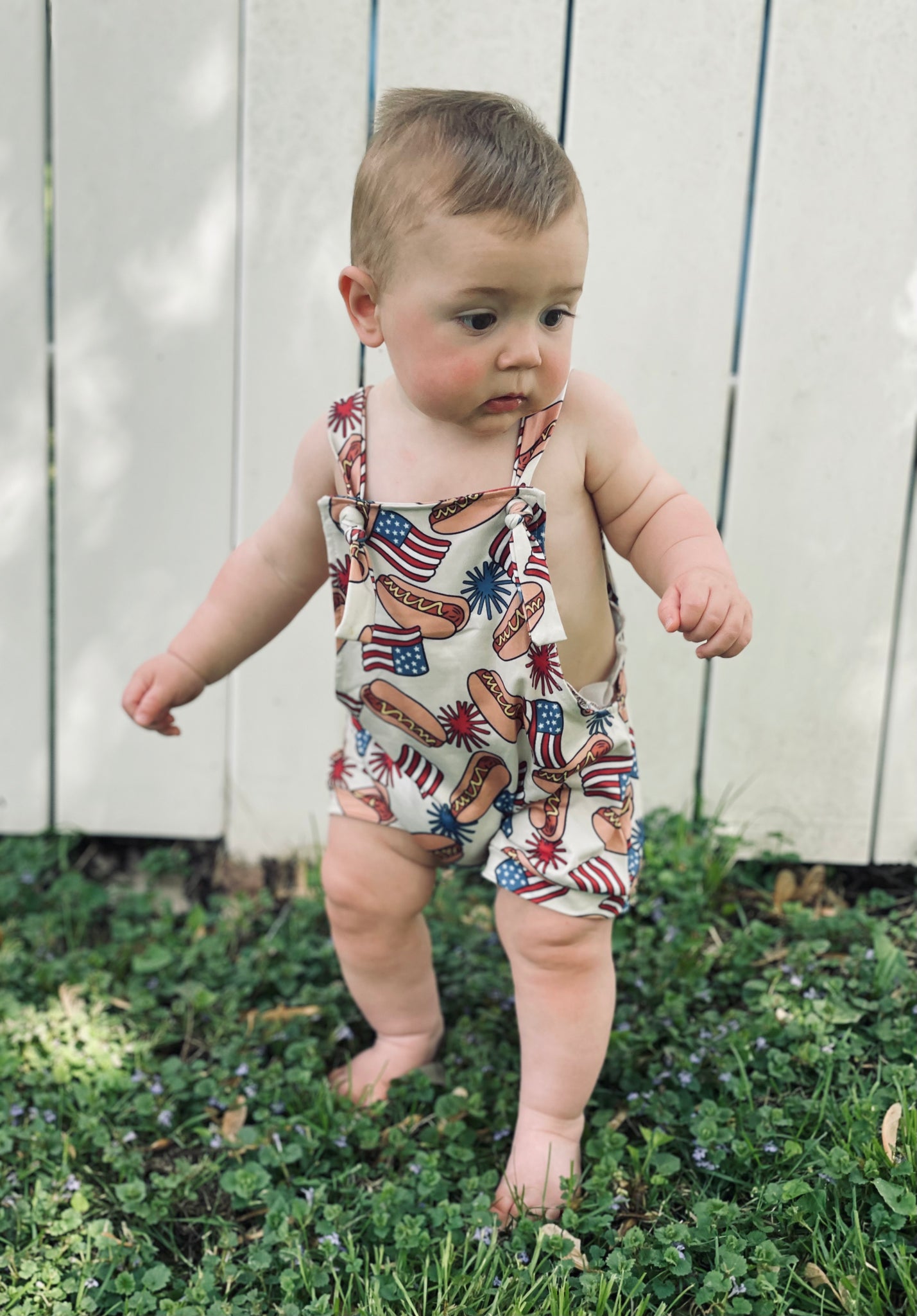 Fourth Of July Unisex Tie Knot Romper/Bibs